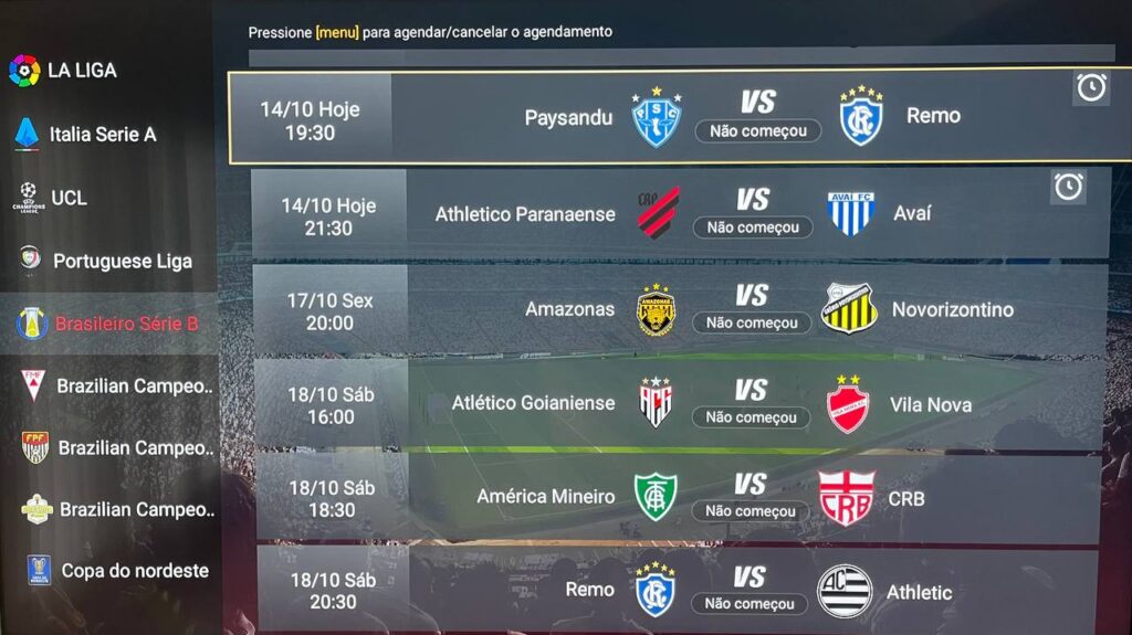 Com a nossa plataforma, você acompanha o clássico Re-Pa e todos os demais jogos da Série B e outras competições nacionais e internacionais, com canais em alta definição e sem travamentos. Nossa tecnologia de streaming de ponta garante que você terá a melhor experiência de assistir futebol ao vivo em qualquer lugar, seja na Smart TV, TV Box, Fire Stick, celular ou computador.